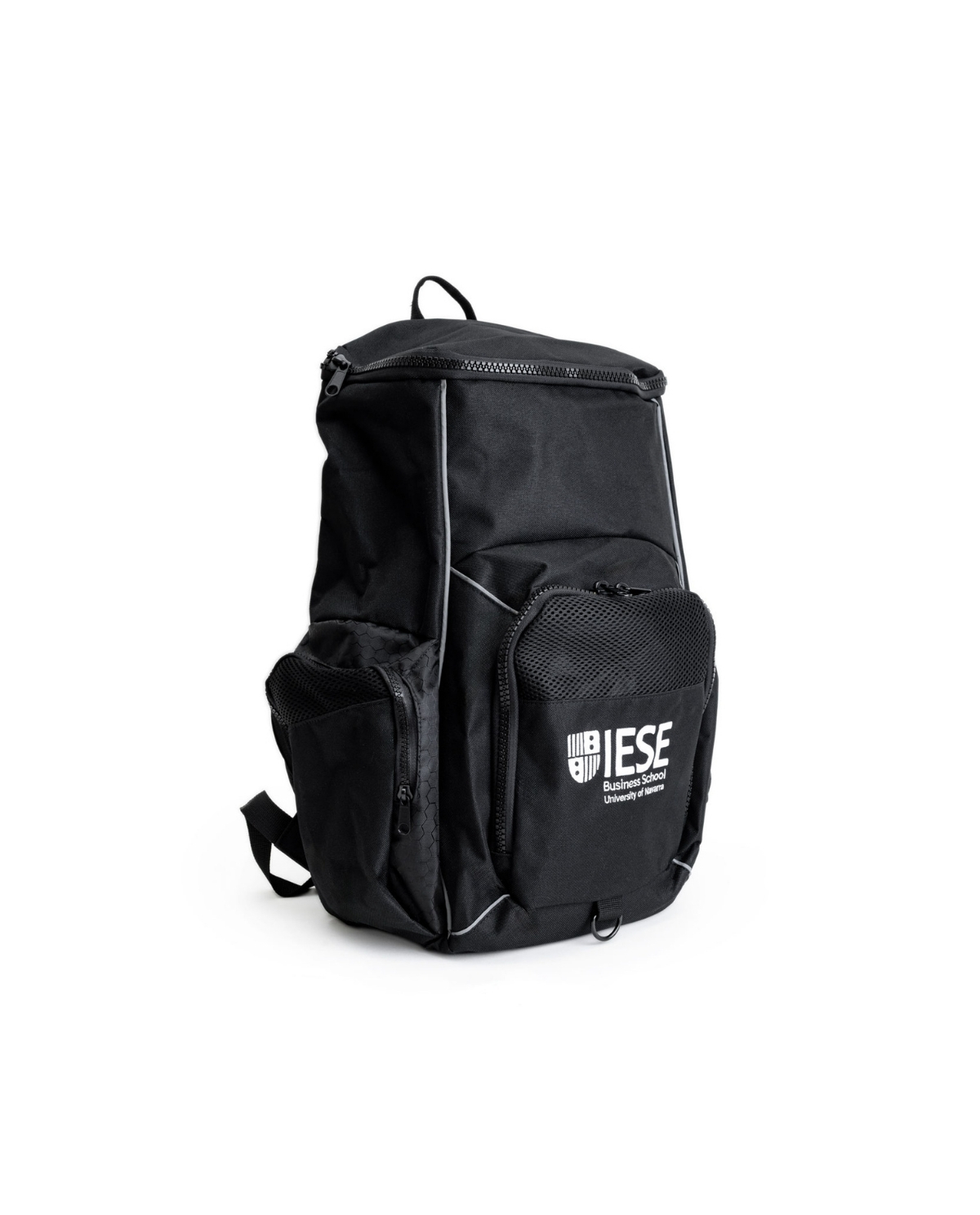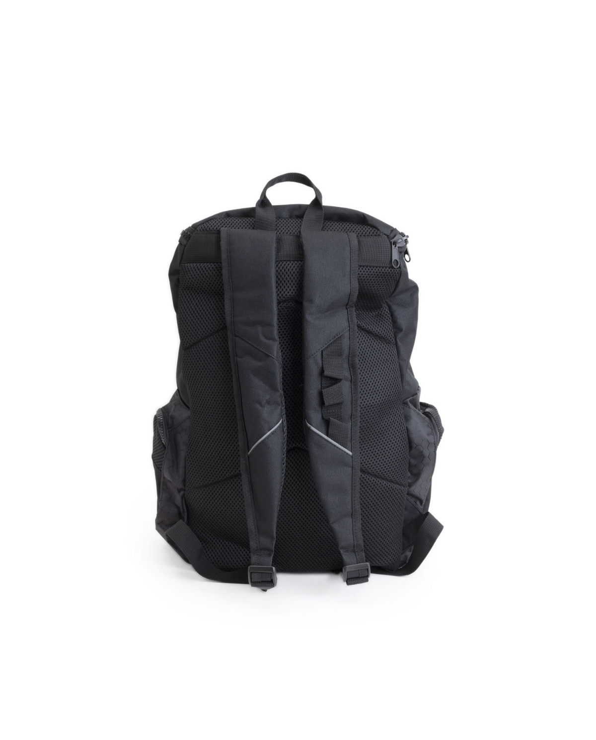 100% polyester. Sports backpack made of 50% post-consumer recycled polyester. Large waterproof front pocket for carrying shoes and items, ideal for water sports to store wet gear. Mesh detail on front pocket and side pockets for optimal ventilation.